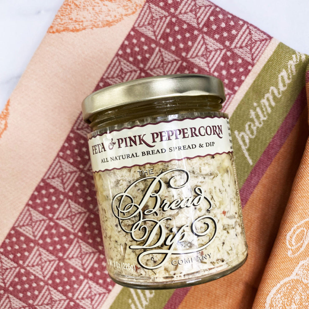 - The Bread Dip Company - Feta & Pink Peppercorn Bread Spread:Feta cheese is carefully blended with olive oil and generously seasoned with whole pink peppercorns for a delightful spread for crostini. 8 oz