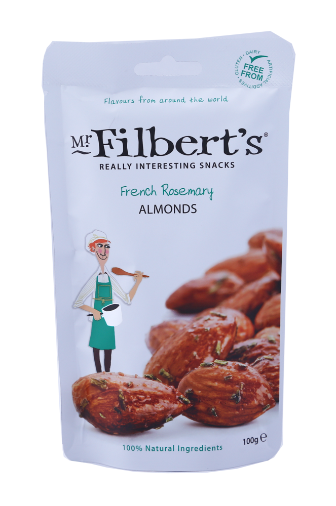 - Mr. Filbert's - French Rosemary Almonds: Hot air roasted almonds are tumbled with fresh French rosemary and a touch of sea salt in this addictive, savory nut.110 gr