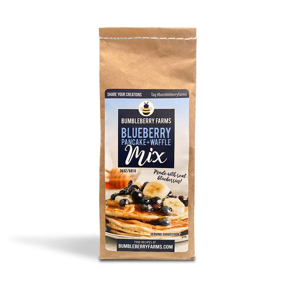 - Bumbleberry Farms - Blueberry Pancake & Waffle Mix: Made with real blueberries and real sweet cream buttermilk, this 24-ounce mix contains all of the dry ingredients needed to make 18 servings of pancakes or waffles! 24 oz.
