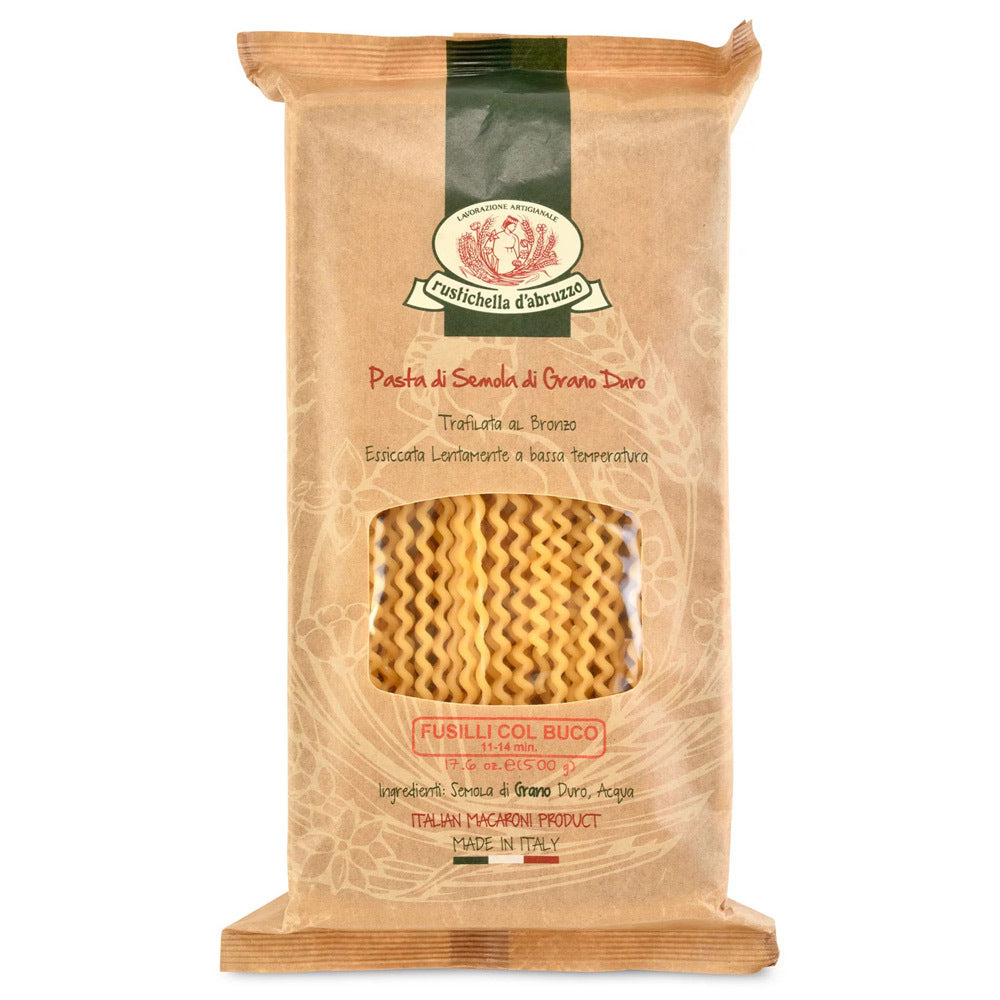 - Rustichella d'Abruzzo Fusilli col Buco: A long, hollow corkscrew pasta, twice as long as spaghetti, with a superb texture and depth of flavor. Ideal for red sauces. 17.6 oz.