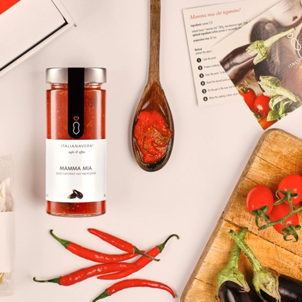 - Italianavera - Mamma Mia Eggplant Tomato Sauce: Handmade tomato sauce enriched with fresh, hand-cut eggplant which adds a meaty texture, and the bright flavor of fresh basil, slow cooked in small batches. 19.4 oz.
