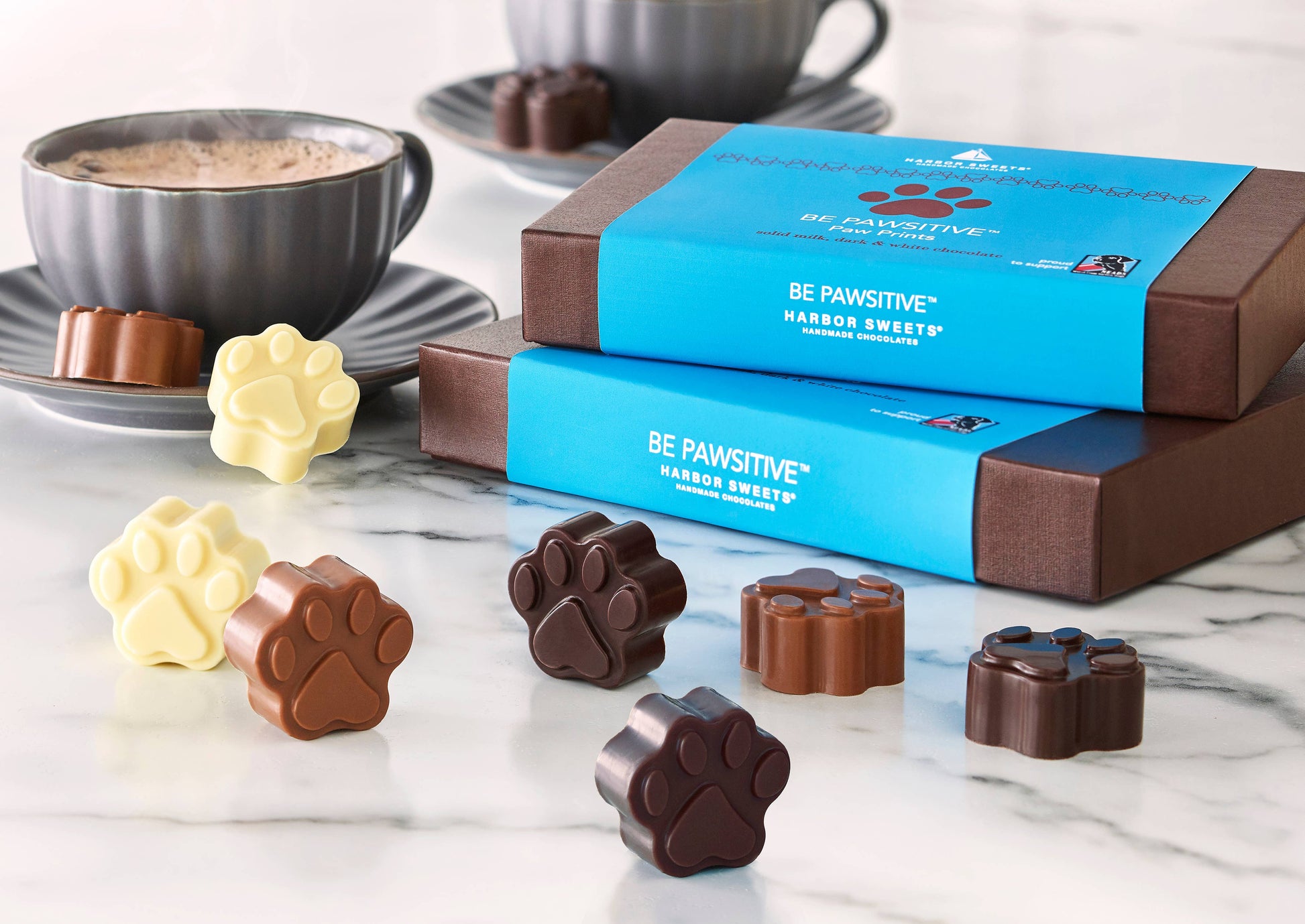 - Harbor Sweets Chocolates - Be Pawsitive Solid Chocolate Dog Paws: An assortment of the very best milk, dark and white chocolate paw prints. For human consumption only. 6 pieces