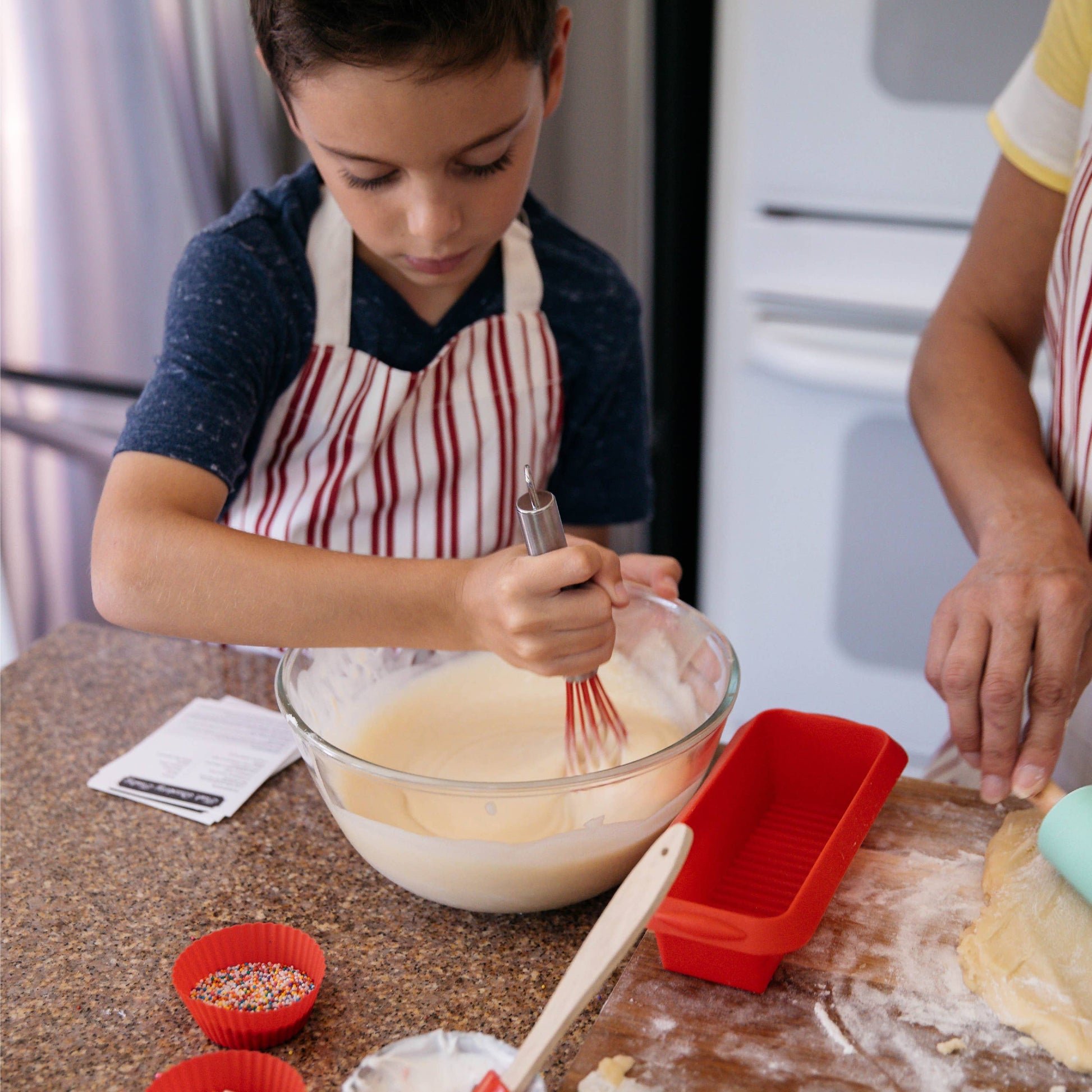 Every essential tool a young baker needs in one comprehensive 17-piece collection. This thoughtfully curated starter kit combines professional-quality silicone tools scaled for children with five recipe cards. Watch as they discover the magic of transforming simple ingredients into homemade goodies—all while developing real baking skills that'll impress family and friends.