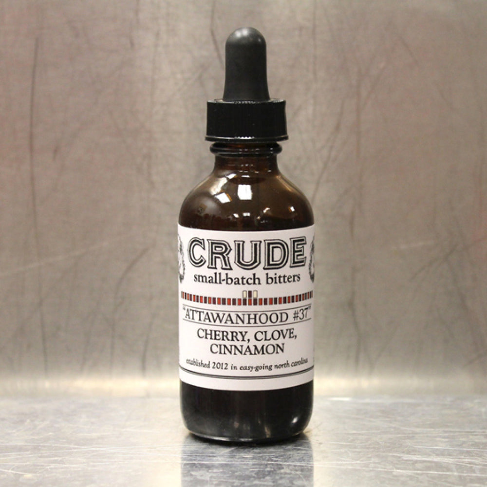 - Crude Bitters — Attawanhood #37 Bitters with Cherry, Clove, & Cinnamon: A perfect concoction of stone fruit silkiness from cherry with sharp bitterness and a dark spice bite from clove and cinnamon. A drop or two enhances any classic Old Fashioned or Manhattan. 2 oz.